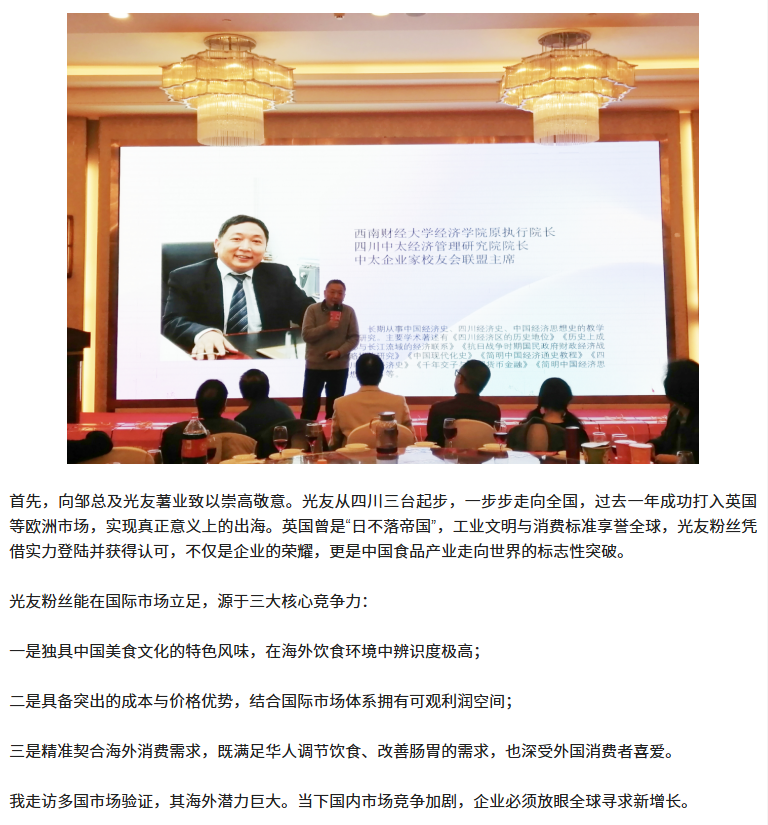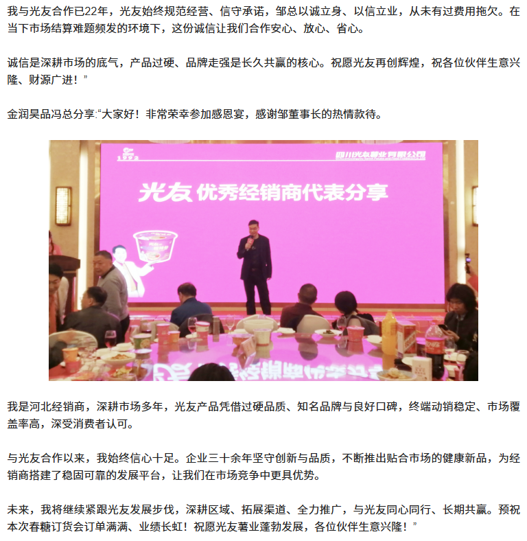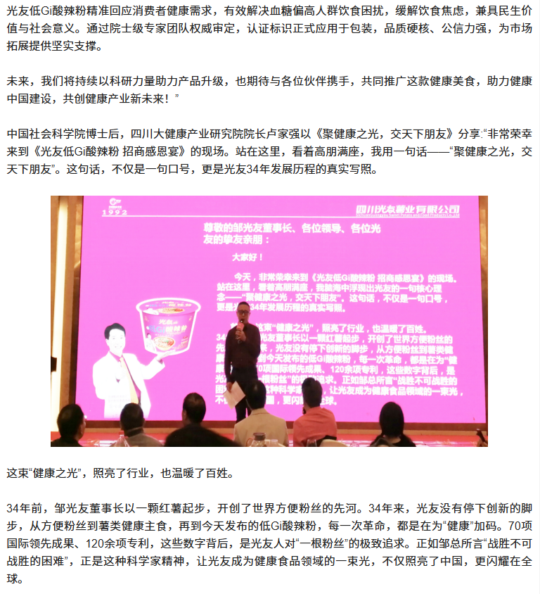 轉(zhuǎn)載四川商界網(wǎng) 光友低Gi健康酸辣粉招商感恩宴圓滿舉行