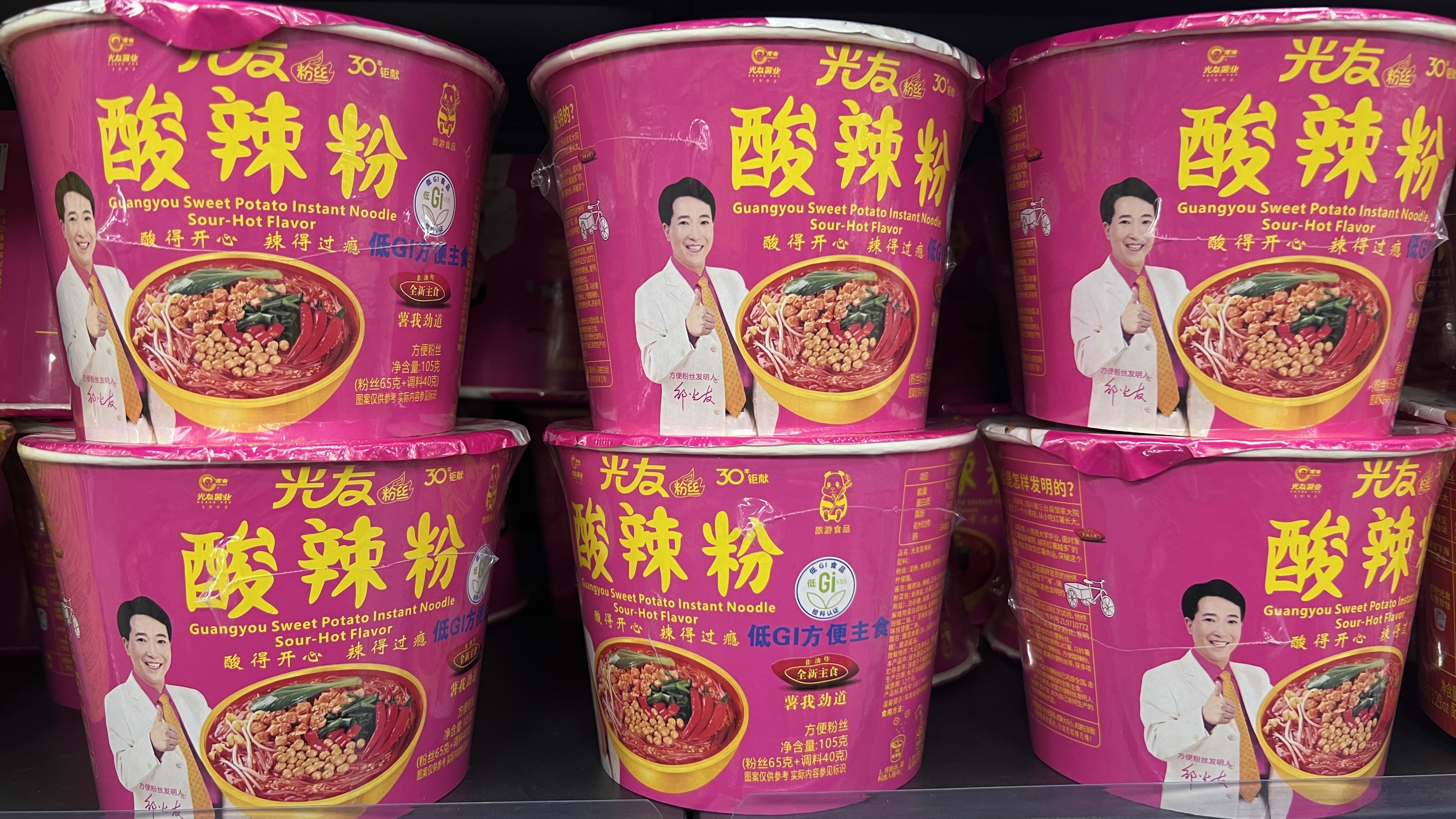 光友酸辣粉絲紅薯粉絲網(wǎng)紅方便粉絲即泡即食非油炸麻辣細粉絲6杯